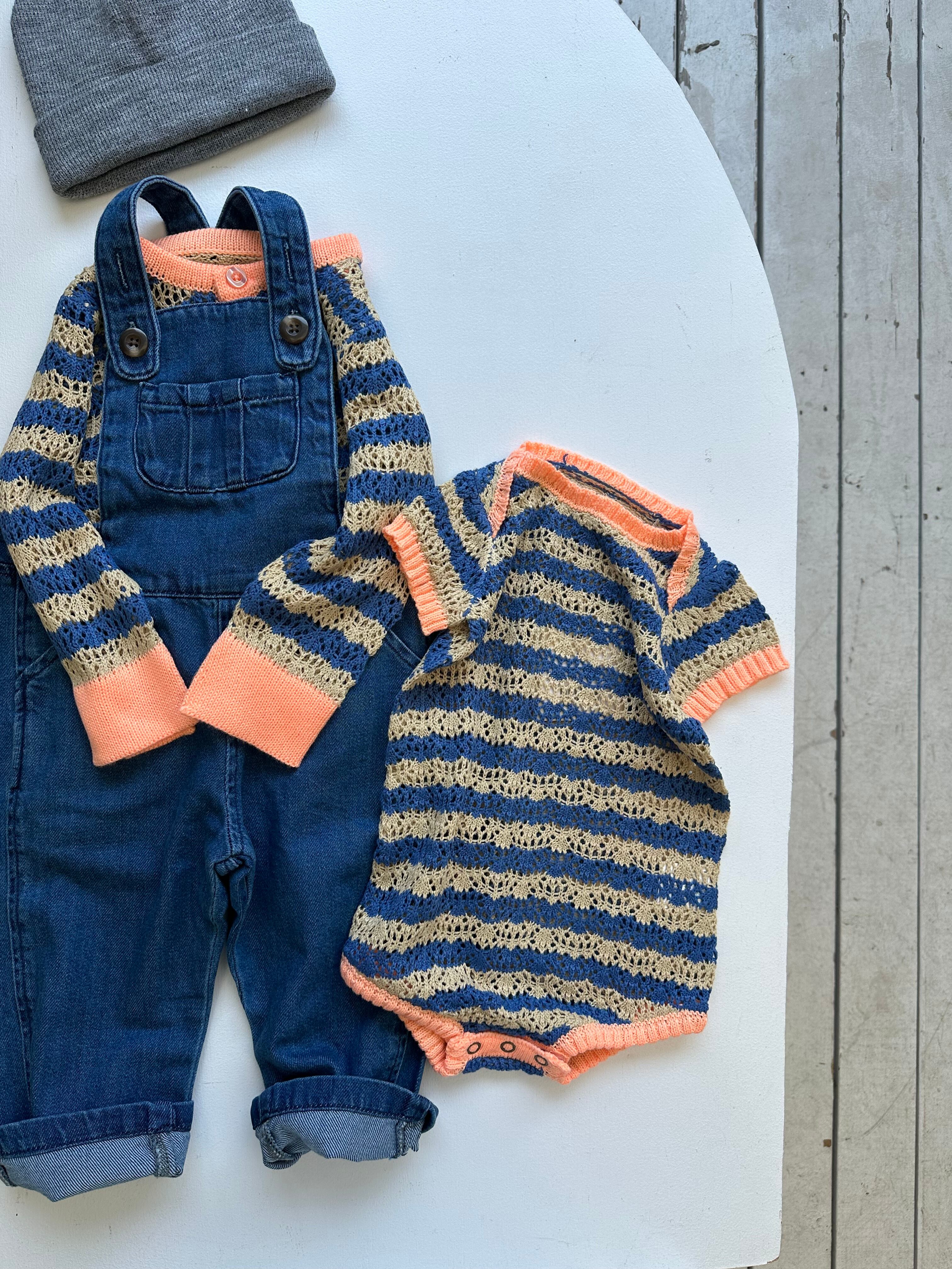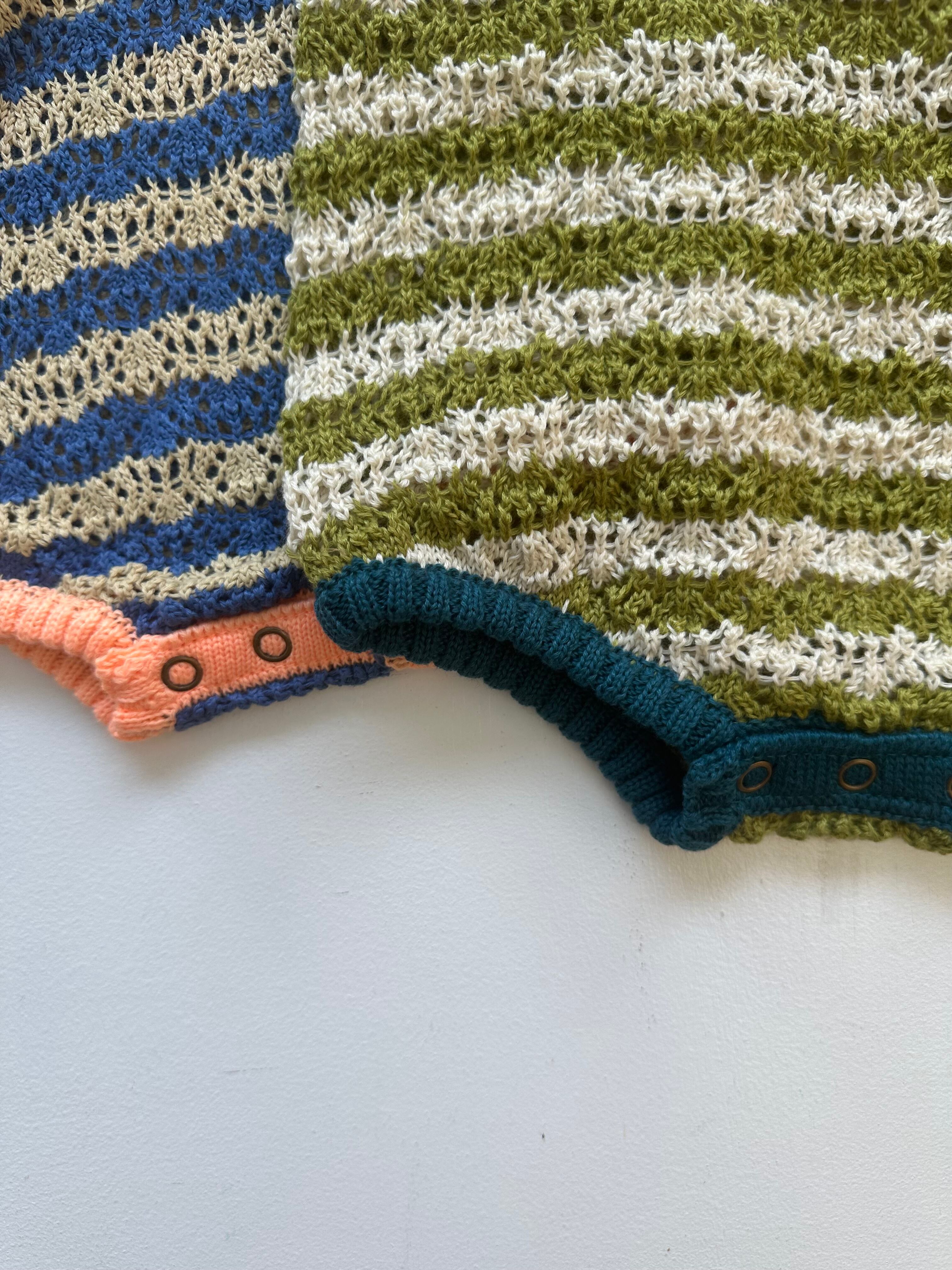 &pal openwork border knit rompers(navy/khaki)xs.s