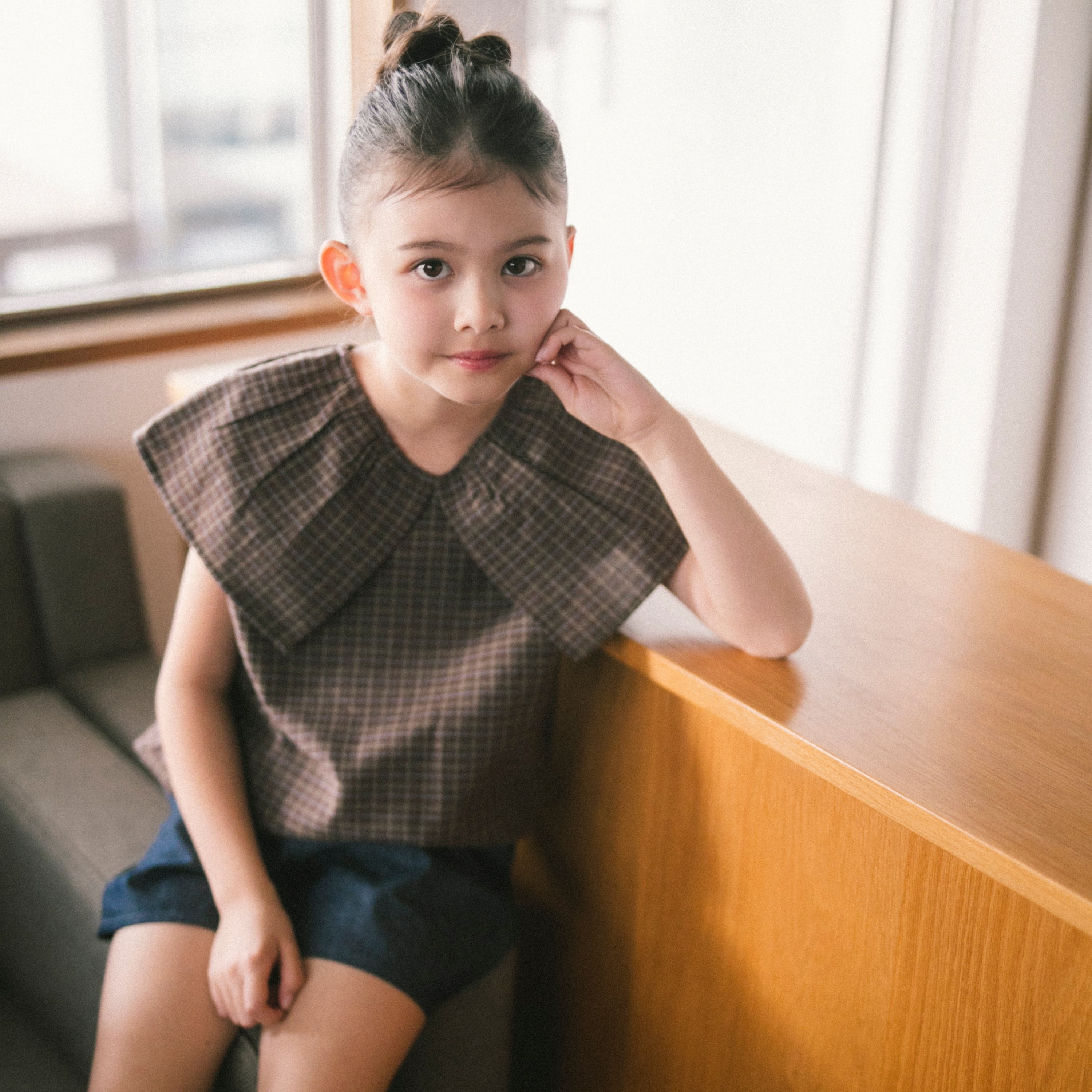 【4/6 10:00まで送料無料】petitmig blouse p15(brown)130.140